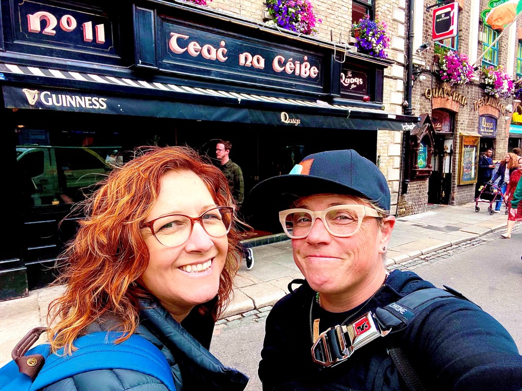 And then we walked around to take it all in…Christchurch Cathedral, the river walk, Ha’penny bridge, the streets of Temple Bar. We stopped for our first pint and listened to a guy sing pub songs for awhile. But we were sooo tired. We took jet lag relief pills all through the journey, melatonin to sleep a few hours on the plane, and we rallied as hard as we could.