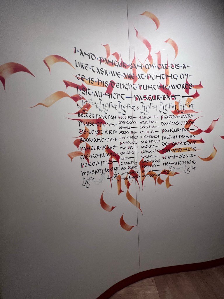 The book itself was under strict lock and key, no photos or cameras allowed. But I understand that every day they turn it to a new page…todays page was Folio 124r, Matthew 27, 38…and it looked like this…