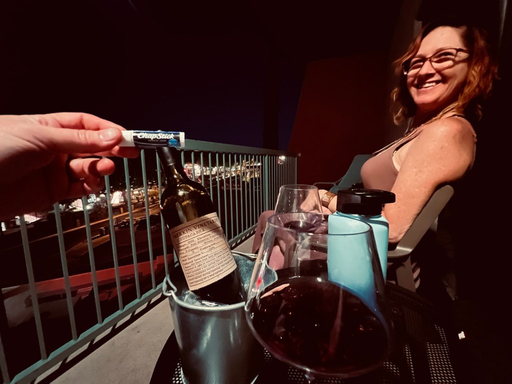 It cooled off enough after dinner to walk around and visit the shops. We wanted to find some local wine to bring back to our room and found a red blend aged in concrete called Chupacabra from Merkin Vineyards a few towns over, which is owned by the lead singer of Tool. We’re totally gonna bring some home with us, but this bottle we opened on the balcony as we watched the sunset light up the rocks and turn them all kinds of colors.