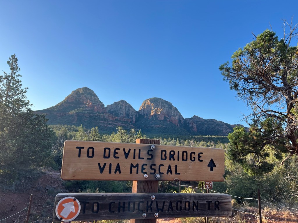 So, this morning the alarm went off at 5am for our hike to Devil’s Bridge. We shuffled out and shipped off to the Mescal trail parking lot and took the route deemed “most scenic” by folks on YouTube and the AllTrails app.