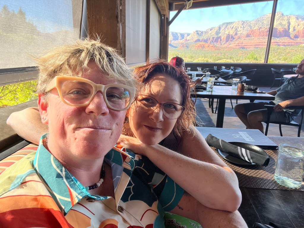 In a moment of fate, Gina from West Virginia, who took our photo up there on the Devils Bridge of terror, was seated right next to us a few minutes after we sat down. Connection! Timing! A sign! So we had a wonderful conversation and she told us Sedona is her favorite place on Earth and she’s been here every year since her first time…she gave us some restaurant recommendations, hikes she likes, and great places for stargazing. She said being here always feels like self-care…and I felt that. She’s absolutely right.