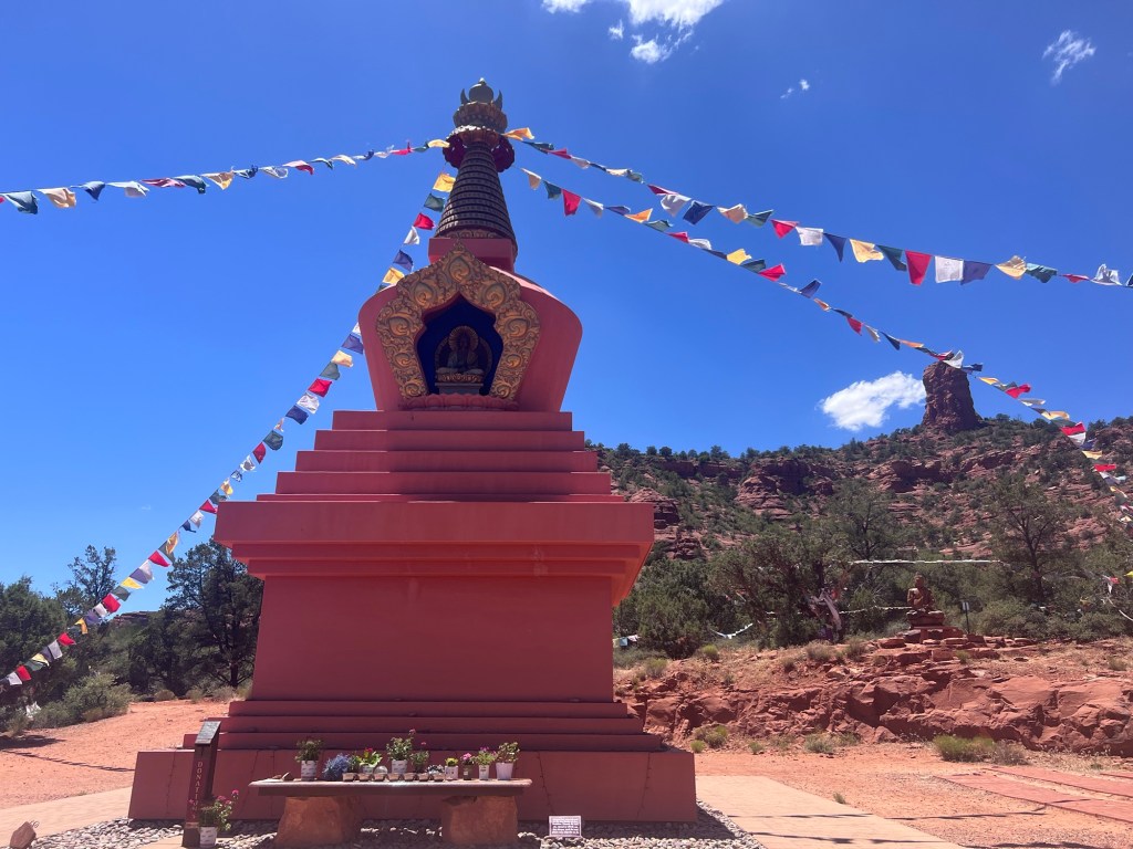 We were absolutely beat…down, but not out. Came back to the room for a little recharge and some flip flops then headed out to the Peace Park on the west side of town to get some meditative time in at the Amitabha Stupa.