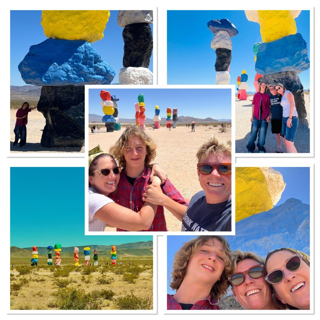 Then we headed over to the Seven Magic Mountains just outside Vegas for our Instagram moment. It’s an art installation you can see from the freeway, seven pillars of huge stacked painted rocks. It’s pretty amazing and free.