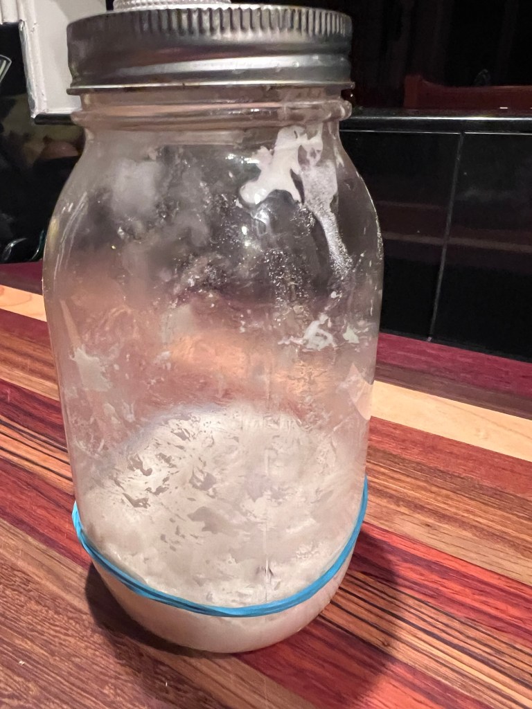Friday night, I started Phase 1 at 11pm: The Build, where you feed the starter, mix it and let it grow sitting in a jar on the counter.