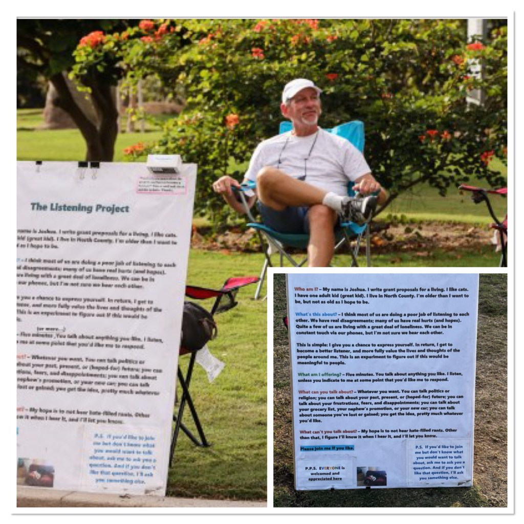 We walked by street performers and activist tables and a succulent/pottery fair. And one guy who just sat in a chair advertising The Listening Project, where he just listens to whatever you want to say to him: ranting, complaining, thoughts, philosophies…he just listens. And we teared up a little reading his sign, like the world needs more of this.