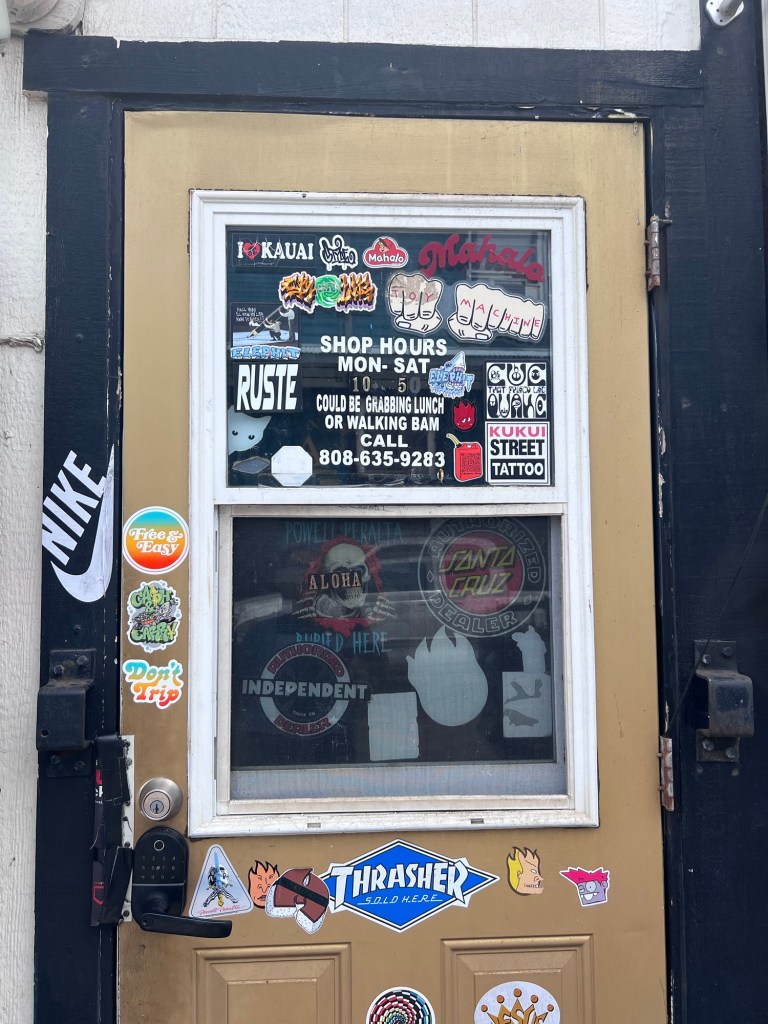 Elephit Skateshop in Kapa’a wasn’t just a store—it was a story. The owner found his rhythm on this island and carved a life from grip tape, daily T-shirt designs, and knowing every skater on the island by name. He even let the kiddo cut his new deck and asked questions like someone who actually wanted to know the answers.
